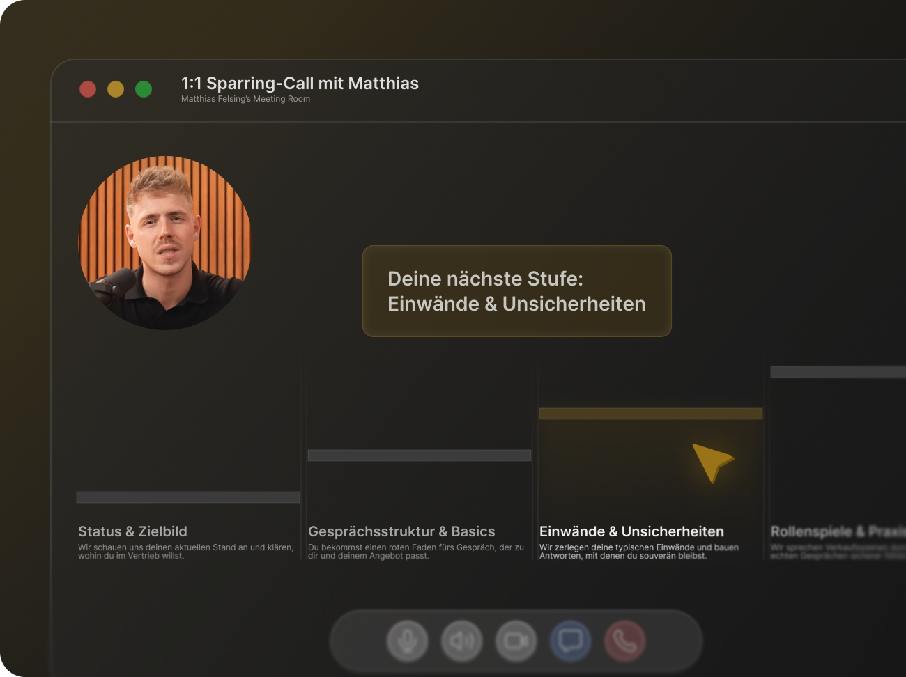 Matthias macht Closing greifbar, gibt dir tiefe Einblicke aus der Praxis und begleitet dich eng auf deinem Weg – mit Fokus auf ein freieres, selbstbestimmtes Leben, ohne Chaos und ohne leere Versprechen.